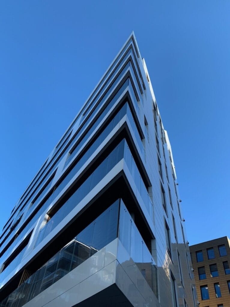 | B7 Vestbygget_Bjørvika | Glassrekkverk balkonger, fasadekledning aluminium, spilerekkverk i trapper |